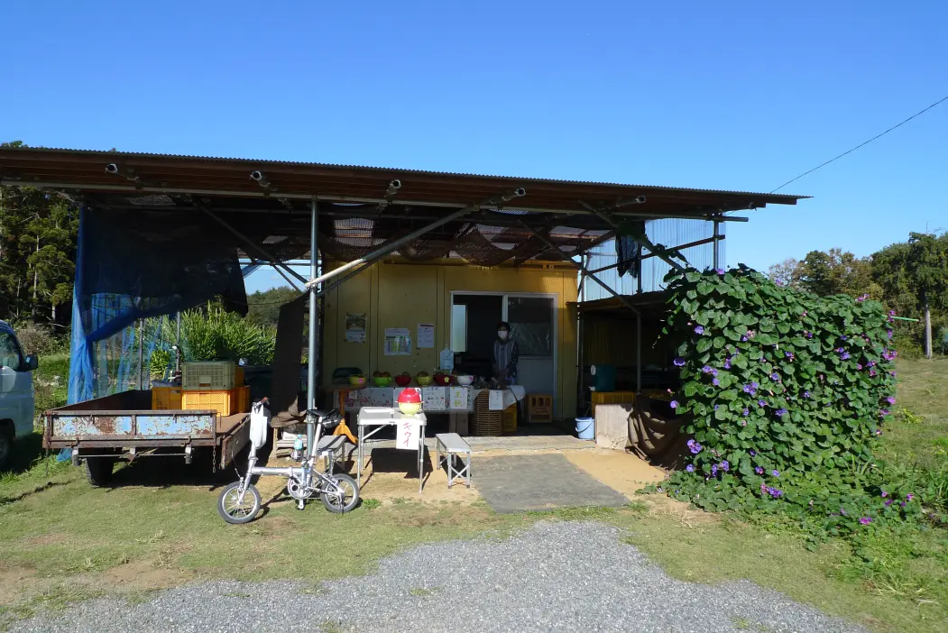La paysanne qui tenait ce petit commerce en bordure de route vendait ses grosses poires au prix de 600 yens pour deux. Ça m’embêtait un peu, puisque je n’avais pas de sac à dos et allais devoir les attacher au guidon, sur un mini-vélo déjà pas très stable…