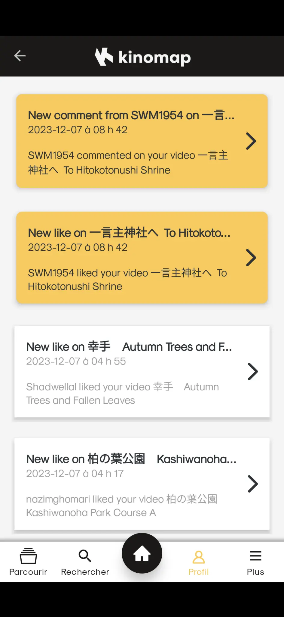Kinomap fonctionnant fondamentalement comme un réseau social, la popularité du contenu des participants (dans le cas présent, des gens qui filment leurs sorties santé principalement à vélo, à pied ou sur l’eau) a tendance à augmenter rapidement si ledit contenu est (1) intéressant et (2) ajouté fréquemment. Le site récompense les producteurs de contenu sous forme d’abonnements gratuits (il suffit de mettre au moins une vidéo par mois sur le site pour avoir un mois d’abonnement gratuit), et sous forme d’euros ou de dollars pour les producteurs dont les vidéos sont les plus populaires dans l’application Kinomap sous Android ou sous iOS (les visionnements sur Internet ne comptent pas).
