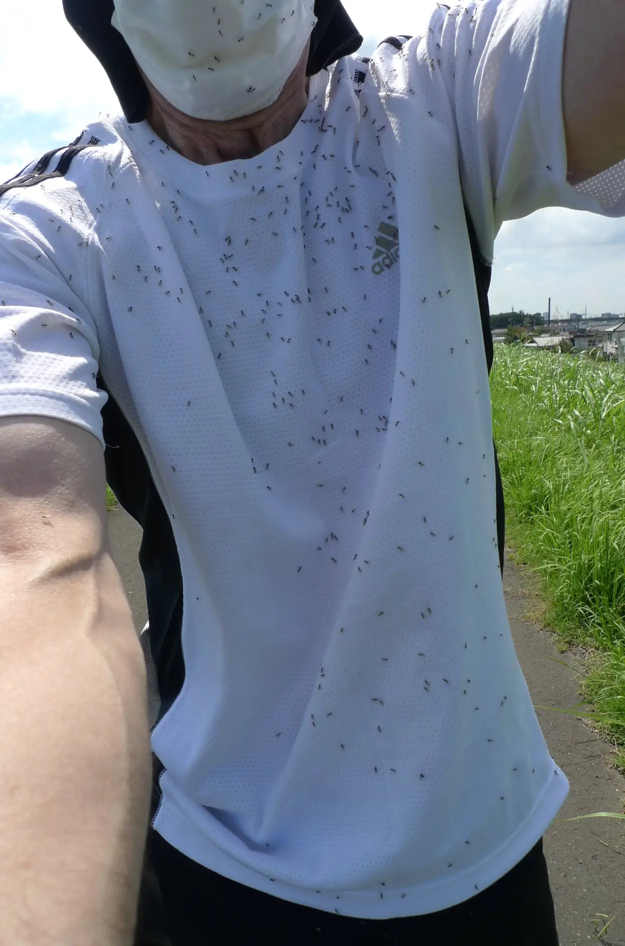 Les conditions favorables sont, d’après moi, une longue période de pluie pour favoriser la naissance d’un tas de nouveaux moucherons, ainsi qu’un chemin étroit, asphalté et protégé du vent par les mauvaises herbes qui poussent des deux côtés. La chaleur de l’asphalte provoque un courant d’air chaud qui forme une colonne bien droite dans laquelle les moucherons se laissent flotter en tourbillonnant.