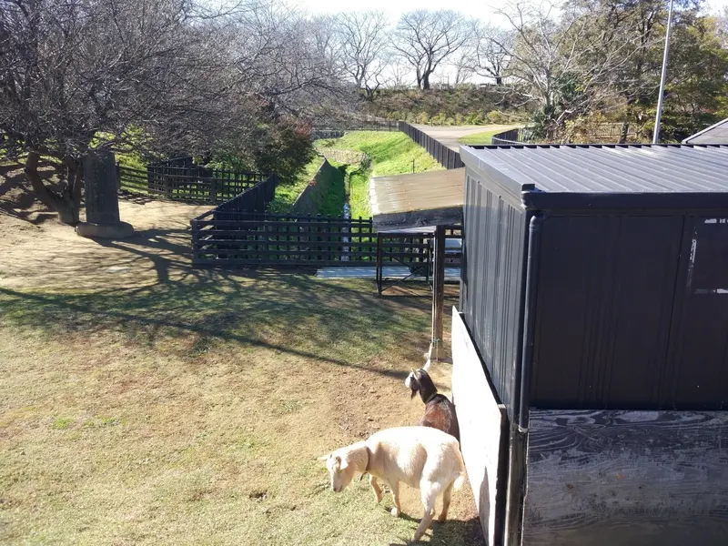 Puis, à la sortie du parc de cerisiers de Satte, Grincheux est allé saluer deux chèvres à l’abri du vent et saturées de soleil.