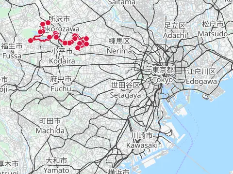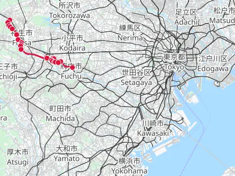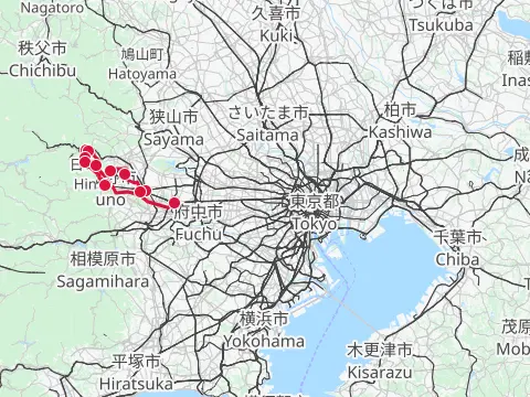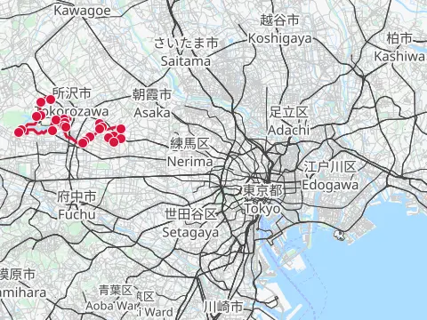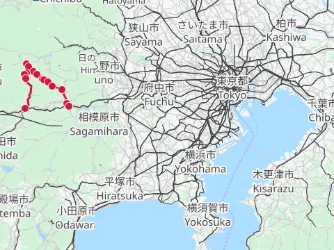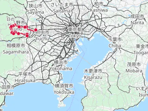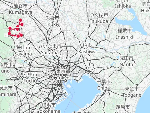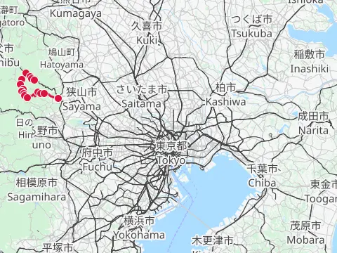 Mots-clés : 拝島駅 飯能駅 多摩川 大荷田川 青梅 奥多摩橋 榎峠 松ノ木トンネル 成木川 入間川