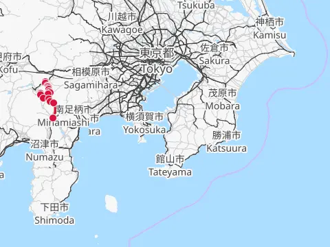 Un trajet de niveau de difficulté supérieur via deux cols à franchir. À partir de Uenohara, le tracé se dirige d’abord vers le col Tsurutōge dans une longue ascension parsemée de hameaux isolés et suivie d’une descente jusqu’au village de Kosuge. Cette traversée du col est suivie d’une montée ardue jusqu’au col suivant, Matsuhimetōge, en contemplant les feuillages automnaux du mont Kumotori, puis le mont Fuji. La balade se termine avec fougue dans une descente dynamique qui, en passant par le barrage Fukashiro, se termine à Ōtsuki.