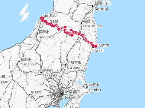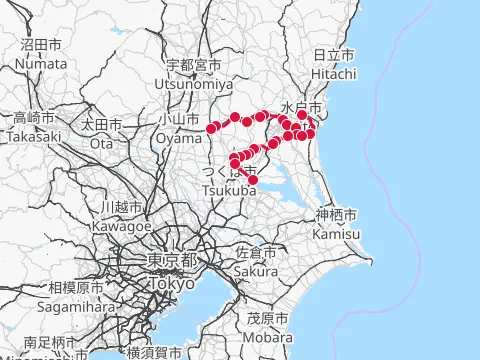 Balade sous le thème des cerisiers à Tochigi. Le trajet passe d’abord par le parc Shiroyama d’Oyama, puis se poursuit via l’allée de cerisiers qui longe la rivière Tohoyogawa. Les cyclistes se promènent ensuite dans Tochigi, ville d’entrepôts traditionnels « kura », puis grimpent sur le mont Ōhirasan pour y contempler la vaste plaine du Kantō depuis Kenshindaira.