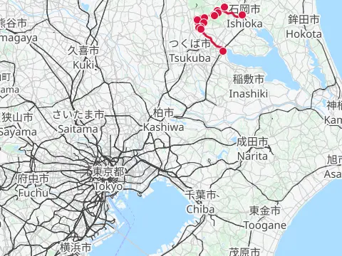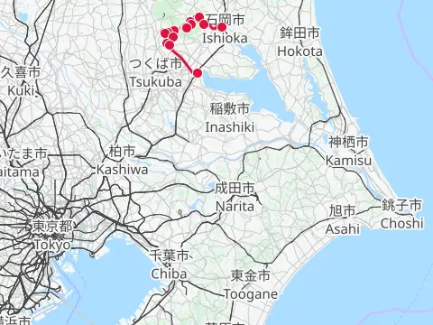 Deux balades dans la vaste plaine du Kantō en contournant le mont Tsukuba. Le premier jour, le trajet emprunte la Ring-Ring Road de Tsukuba, traverse le col Fudōtōge, puis les cyclistes, tout en contemplant les maisons traditionnelles à toit de chaume de Yasato, roulent jusqu’au lac d’eau saumâtre Hinuma. Le surlendemain, le tracé de la deuxième balade commence au bourg d’Ibaraki, en direction de l’ouest vers le mont Tsukuba, et se rend jusqu’à Shimodate en contournant le mont Tsubakuro par le nord.