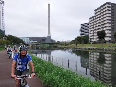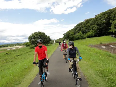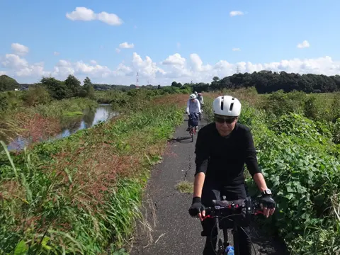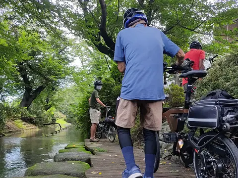 Dans cette balade, quatre cyclistes de Geo Pottering se rendent au Nikaryō-yōsui (un canal d’irrigation creusé au début de la période Edo), dont l’attraction principale est le Kuji-entōbunsui, ou réservoir circulaire de déviation des eaux de Kuji. De là, ils remontent jusqu’au barrage du canal d’irrigation de Shukugawara, puis, à la hauteur du barrage de Shukugawara, empruntent la piste cyclable du fleuve Tamagawa jusqu’à la digue de Kamigawara, avant de redescendre le long de la section Nikaryō-hongawa du canal Nikaryō. Cette balade comprend aussi une très belle vue sur Tōkyō depuis le belvédère du petit mont Masugatayama, ainsi que sur les rizières de Jike.