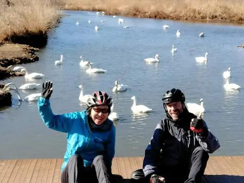 L’avant-midi, les trois cyclistes se rendent au marais Sugaonuma pour aller observer les cygnes et canards. L’après-midi, ils partent à la rencontre de l’histoire et la culture de Jōsō. Au programme : quelques temples et sanctuaires, et l’ancienne demeure d’un très riche paysan de Jōsō.