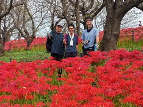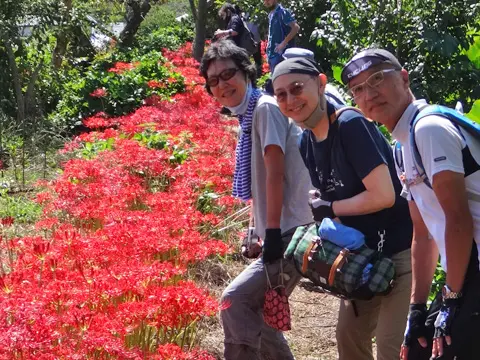 Dans cette balade, Sider et Salīna parcourent d’abord les bas-fonds du parc Fukiageshōbu (吹上しょうぶ公園) à Ōme (青梅) et se rendent au temple Shiofunekannon-ji (塩船観音寺) pour y contempler, dans le sérénité des lieux, les lespedeza et les lycoris rouges. Puis, à travers des sentiers plus ou moins tapés aménagés de la forêt des collines de Kasumi (霞丘陵), ils se dirigent vers la rivière Narikigawa (成木川), la longent, traversent la vallée Naguri (名栗渓谷) et franchissent la rivière Komagawa (高麗川), contemplent les lycoris rouges de Kinchakuda et, finalement, se tapent l’ascension du mont Hiwada (日和田山).