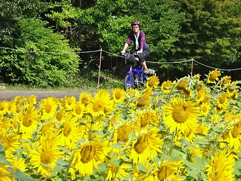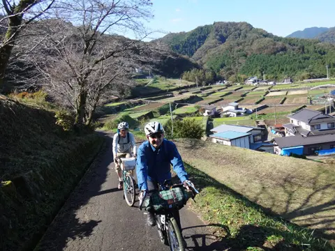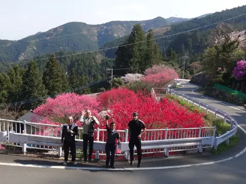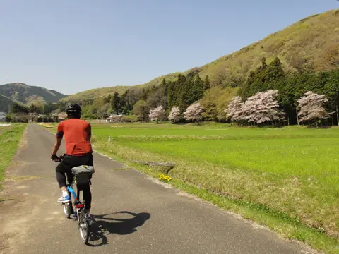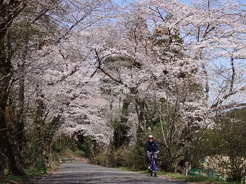 Balade sous le thème des cerisiers à Tochigi. Le trajet passe d’abord par le parc Shiroyama d’Oyama, puis se poursuit via l’allée de cerisiers qui longe la rivière Tohoyogawa. Les cyclistes se promènent ensuite dans Tochigi, ville d’entrepôts traditionnels « kura », puis grimpent sur le mont Ōhirasan pour y contempler la vaste plaine du Kantō depuis Kenshindaira.