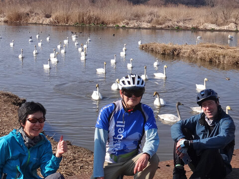 Dans cette balade qui commence dans la préfecture de Chiba, les cyclistes de Geo Pottering s’arrêtent d’abord au parc agricole Akebonoyama pour y contempler les pruniers, puis, quelques kilomètres plus loin, visitent l’ancienne résidence de la riche famille Yoshida. L’après-midi, ils se rendent au Pays des cigognes de Noda pour y observer ces superbes oiseaux blancs, puis ils traversent le fleuve Tone pour se rendre au marais Sugaonuma et bavarder avec les cygnes venus y passer l’hiver.
