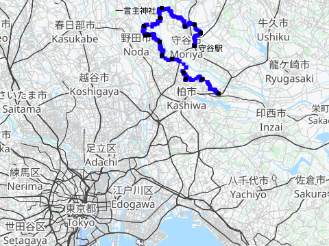 Balade pour aller admirer les lycoris rouges sur la digue Gongendō à Satte. Dans cette balade, les cyclistes longent le cours de la rivière Nakagawa, du canal de drainage Nakashōnai et du fleuve Edogawa, avec comme option la visite des installations de sauce soja à Noda. La balade se termine à la gare de Kashiwa-Tanaka, pour un retour rapide au centre-ville de Tokyo.