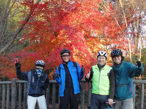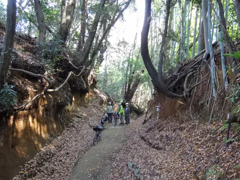 Balade sous les feuillages automnaux des collines de Tama. Elle passe principalement par les délicieux paysages d’autrefois dans les rizières de bas-fonds d’Onoji, puis est suivie d’une descente par l’ancienne route de Daikanzawa. Le trajet emprunte ensuite, en montant, le sentier vert Oneriryokudō (de son surnom la « route des chars d’assaut ») pour aller contempler la couverture végétale automnale, puis, en atteignant la rivière Sakaigawa, prend la direction de Hashimoto. Un trajet très plaisant agrémenté du craquètement des feuilles mortes sous les roues et de l’alternance des petites montées et descentes…