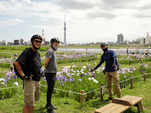 Balade qui passe par trois des lieux célèbres de la capitale peints par Hiroshige. C’est aussi un petit voyage à vélo le long de nombreux cours d’eau de Tōkyō (Sumidagawa, Arakawa, Nakagawa, Kyū-Edogawa et Edogawa), au parc Satomi pour y contempler les roses et au parc Mizumoto pour y observer les oiseaux sauvages.