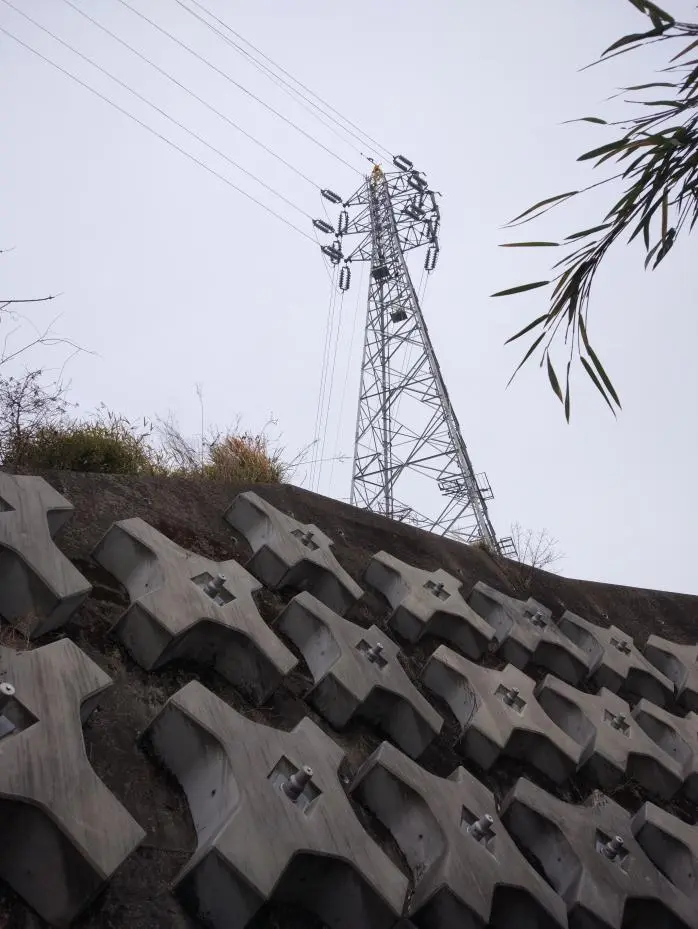 En poursuivant notre route, nous sommes passés le long d’un talus que l’on avait littéralement boulonné sur place, chacun de ces boulons en forme de croix étant de dimensions propres à intimider le petit Béni-le-rouge.