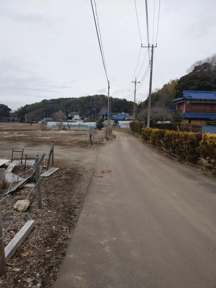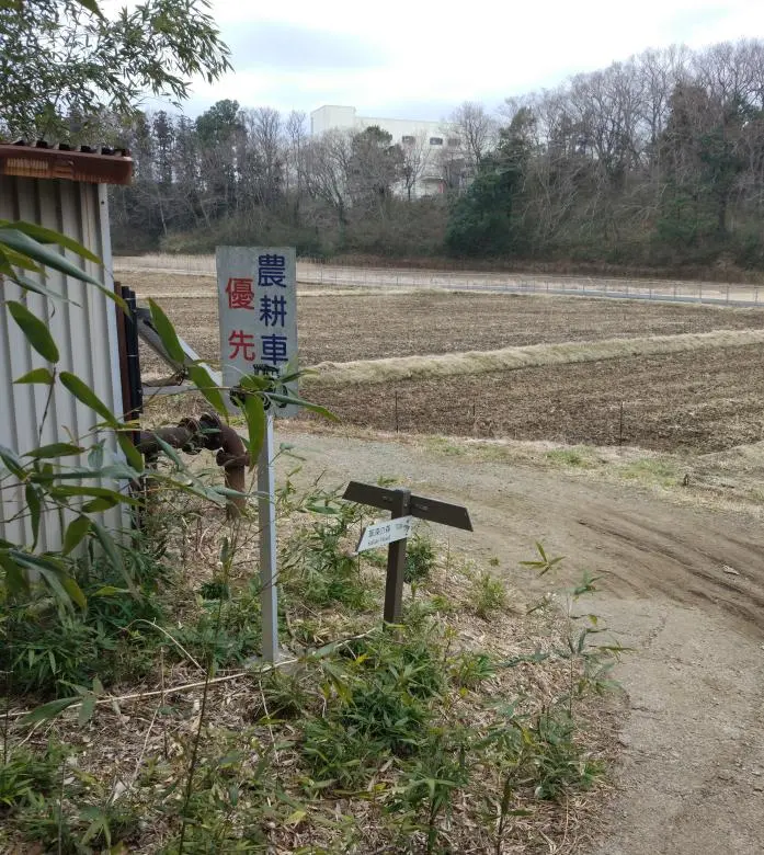 L’estomac rassasié, nous avons repris notre route sur un étroit chemin de terre où, à la hauteur d’une intersection déserte, une affiche indiquait qu’il fallait céder la priorité aux véhicules agricoles (農耕車優先).