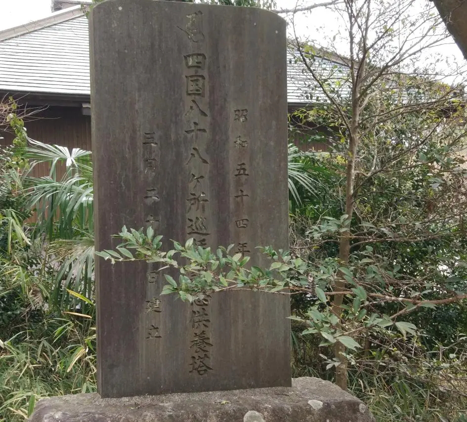 Et comme de fait, en regardant à droite, Béni-le-rouge et moi constatons que notre pèlerin dit vrai, comme en témoigne cette pierre gravée en 1979 (昭和54).