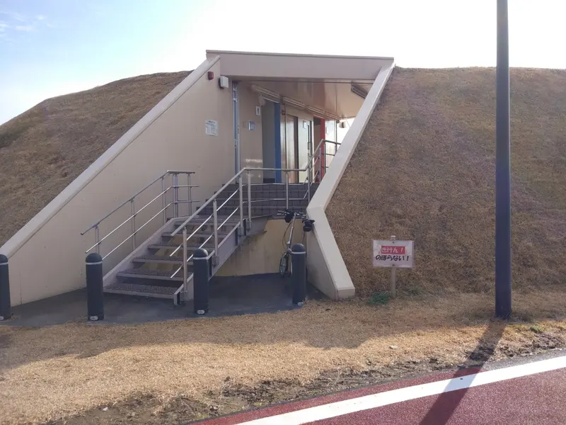 En roulant vers le nord-ouest, donc, nous sommes passés devant une butte qui, pour ceux qui passent dessus cache des toilettes souterraines, et pour ceux qui passent à côté offre des toilettes surélevées.
