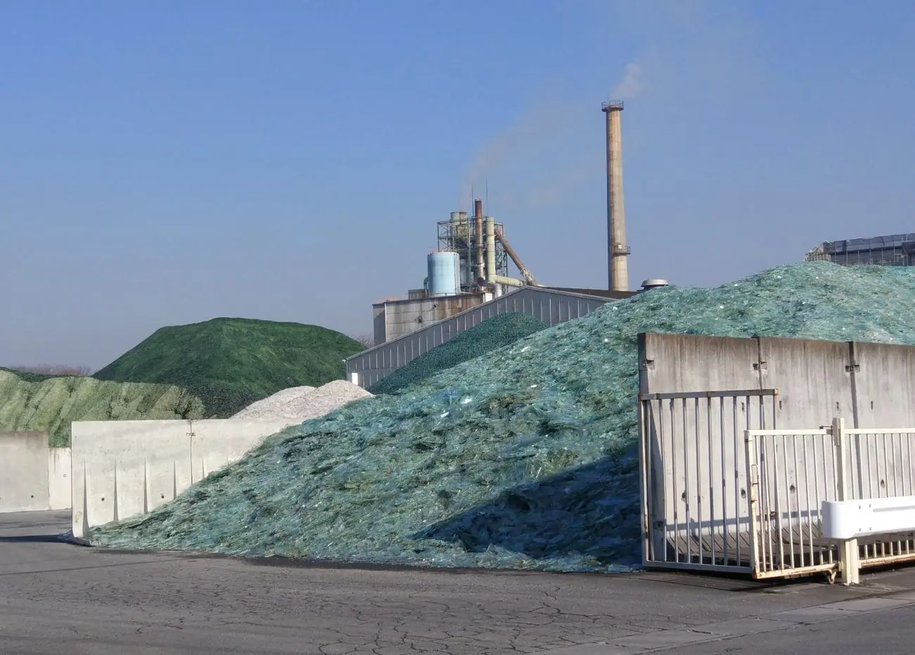 Encore plus au sud, et parce que nous ne roulions pas vite, nous n’avons pas raté les montagnes de verre et de vert de cette usine.