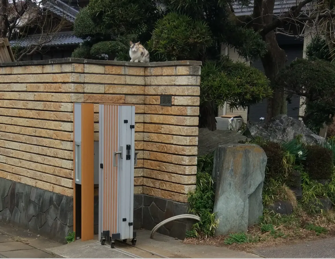 Et du côté de Bandō, le 27, un chat jouait avec le mur d’enceinte.