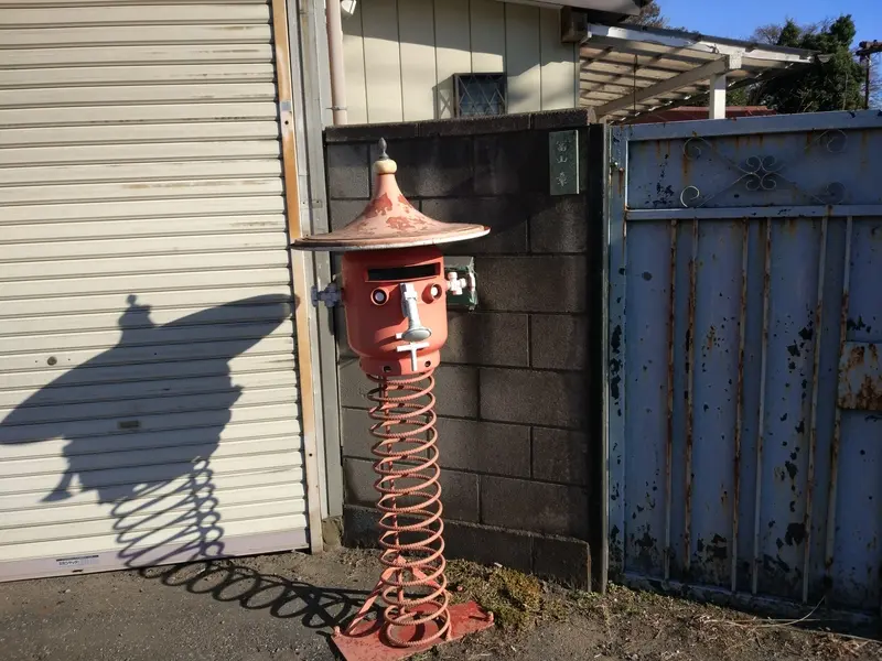 Vue de profil, avec l’ombre fine projetée derrière sa bouche, cette boîte aux lettres semblait attendre tristement le printemps sur son spring.