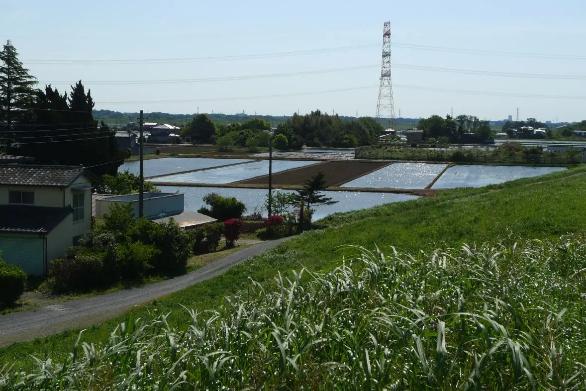 Lundi 3 mai, en pleine Golden Week, départ matinal vers le fleuve Tone après avoir bien regonflé les pneus du vélo, parce qu’il vente pas mal fort et qu’avec des pneus mous contre le vent, ça peut être pénible.