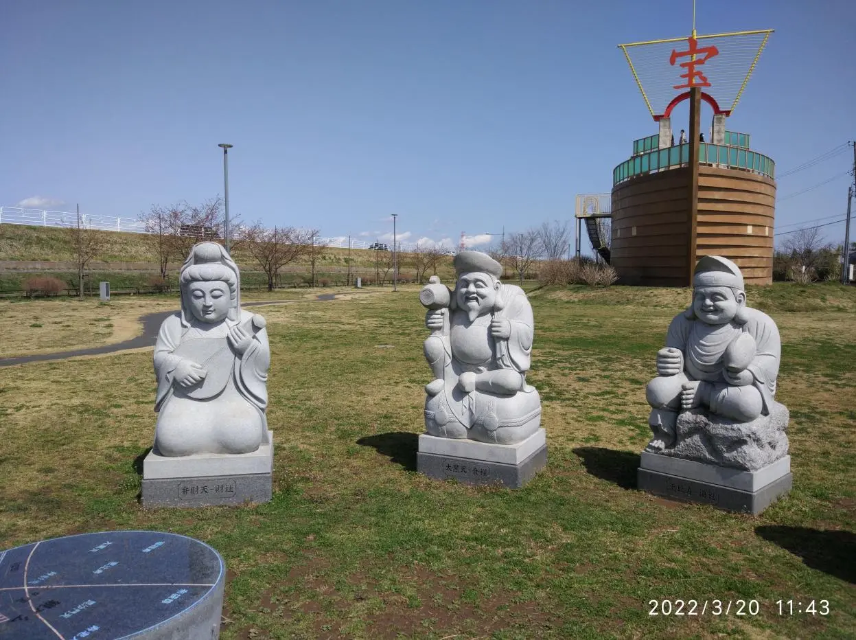 La thématique de ce parc en était une tirée de la mythologie, celle des sept divinités du bonheur, venues sur leur navire aux trésors (takarabune 宝船).
